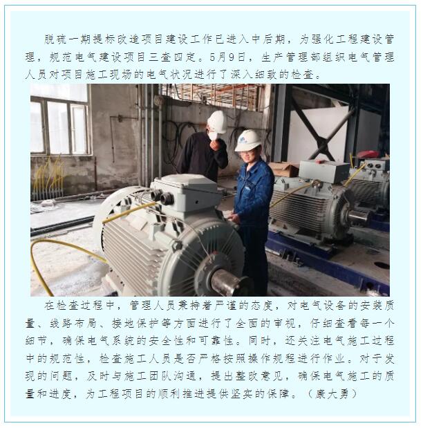 生產(chǎn)管理部組織開展脫硫一期提標改造項目電氣檢查