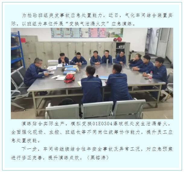 氣化車(chē)間開(kāi)展“變換氣泄漏火災(zāi)”應(yīng)急演練