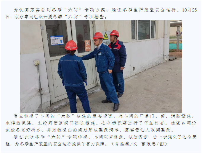 供水車間組織開展冬季“六防”專項(xiàng)檢查