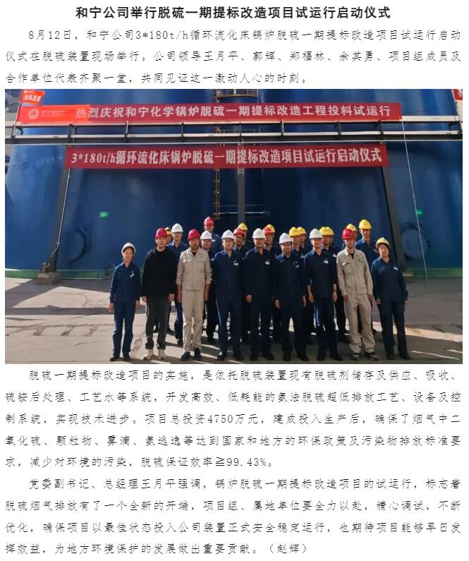 和寧公司舉行脫硫一期提標改造項目試運行啟動儀式