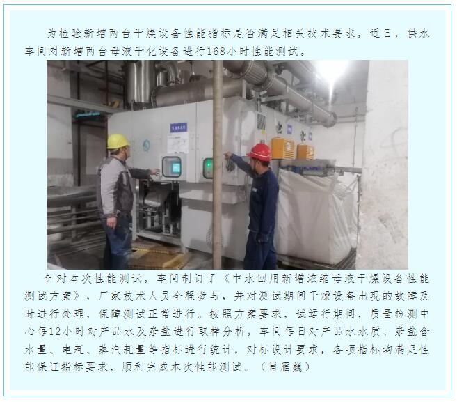 供水車間新增母液干化設(shè)備完成性能測(cè)試