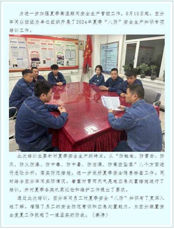 空分車間組織開展夏季“八防”培訓(xùn)