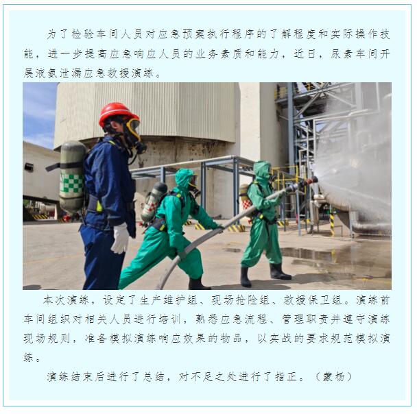 尿素車間開展液氨泄漏應(yīng)急救援演練